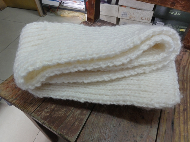 これは駄目だと編み物屋に行き、最後の5センチくらいを編んでもらう。